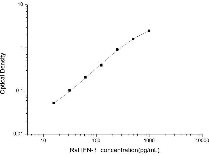 Intra-assay Precision (Precision within an assay): 3 samples with low, mid range and high level Rat IFN-β were tested 20 times on one plate, respectively. Inter-assay Precision (Precision between assays): 3 samples with low, mid range and high level Rat IFN-β were tested on 3 different plates, 20 replicates in each plate. Both intra-CV and inter-CV are < 10 %.