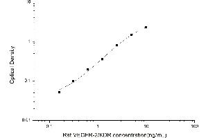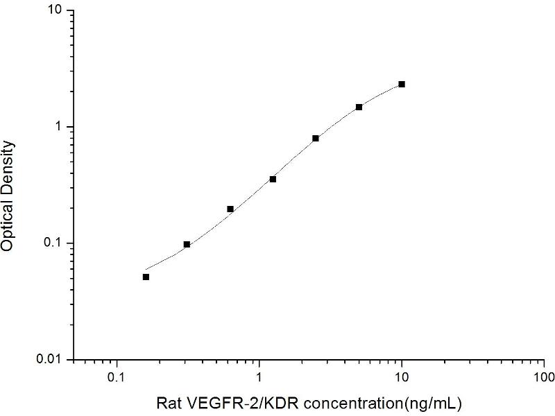 Intra-assay Precision (Precision within an assay): 3 samples with low, mid range and high level Rat VEGFR-2/KDR were tested 20 times on one plate, respectively. Inter-assay Precision (Precision between assays): 3 samples with low, mid range and high level Rat VEGFR-2/KDR were tested on 3 different plates, 20 replicates in each plate. Both intra-CV and inter-CV are < 10 %.