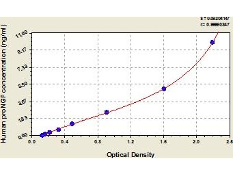 This assay has high sensitivity and excellent specificity for detection of human proNGF. No significant cross-reactivity or interference between human proNGF and analogues was observed. Note: Limited by current skills and knowledge, it is impossible for us to complete the cross-reactivity detection between human proNGF and all the analogues, therefore, cross reaction may still exist.