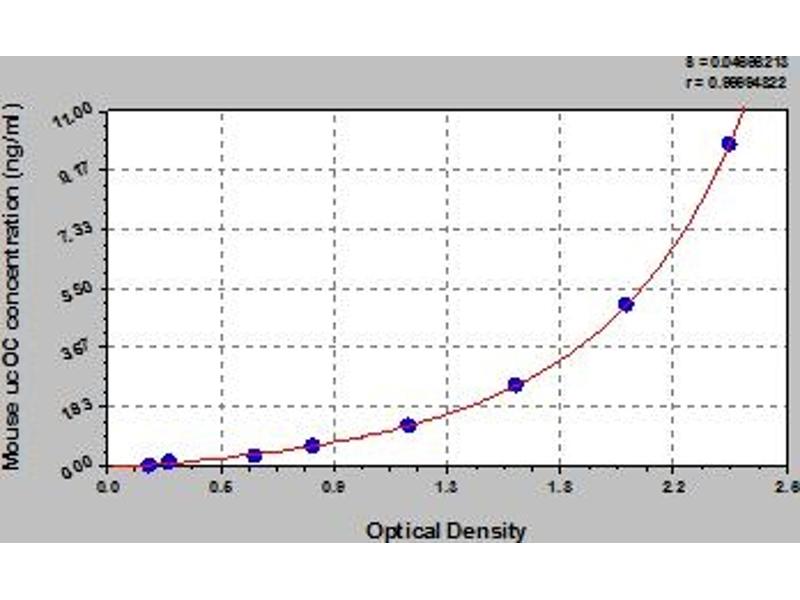 This assay has high sensitivity and excellent specificity for detection of mouse ucOC. No significant cross-reactivity or interference between mouse ucOC and analogues was observed. Note: Limited by current skills and knowledge, it is impossible for us to complete the cross-reactivity detection between mouse ucOC and all the analogues, therefore, cross reaction may still exist.