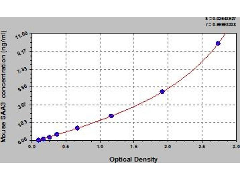 This assay has high sensitivity and excellent specificity for detection of mouse SAA3. No significant cross-reactivity or interference between mouse SAA3 and analogues was observed. Note: Limited by current skills and knowledge, it is impossible for us to complete the cross-reactivity detection between mouse SAA3 and all the analogues, therefore, cross reaction may still exist.