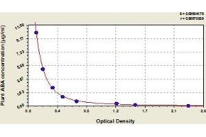 This assay employs the competitive inhibition enzyme immunoassay technique. The microtiter plate provided in this kit has been pre-coated with antigen. Standards or samples are added to the appropriate microtiter plate wells with an antibody specific for ABA. The competitive inhibition reaction is launched between with pre-coated ABA and ABA in samples with the antibody. Then add a Horseradish Peroxidase (HRP) conjugated IgG antibody. A substrate solution is added to the wells and the color develops in opposite to the amount of ABA in the sample. The color development is stopped and the intensity of the color is measured. -