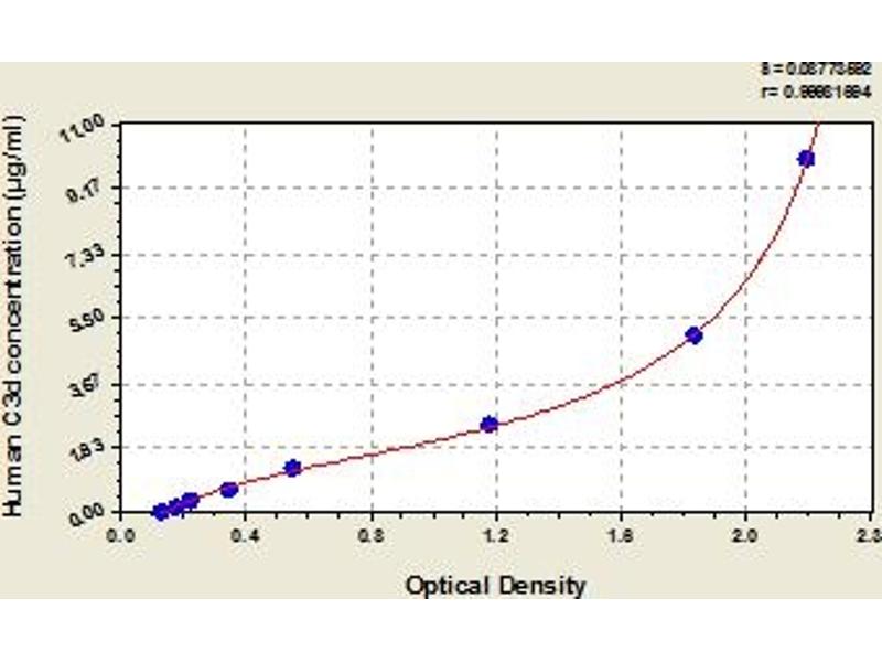 This assay has high sensitivity and excellent specificity for detection of human C3d. No significant cross-reactivity or interference between human C3d and analogues was observed. Note: Limited by current skills and knowledge, it is impossible for us to complete the cross-reactivity detection between human C3d and all the analogues, therefore, cross reaction may still exist.