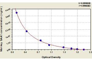 - This assay has high sensitivity and excellent specificity for detection of monkey SAA1. No significant cross-reactivity or interference between monkey SAA1 and analogues was observed. Note: Limited by current skills and knowledge, it is impossible for us to complete the cross-reactivity detection between monkey SAA1 and all the analogues, therefore, cross reaction may still exist.