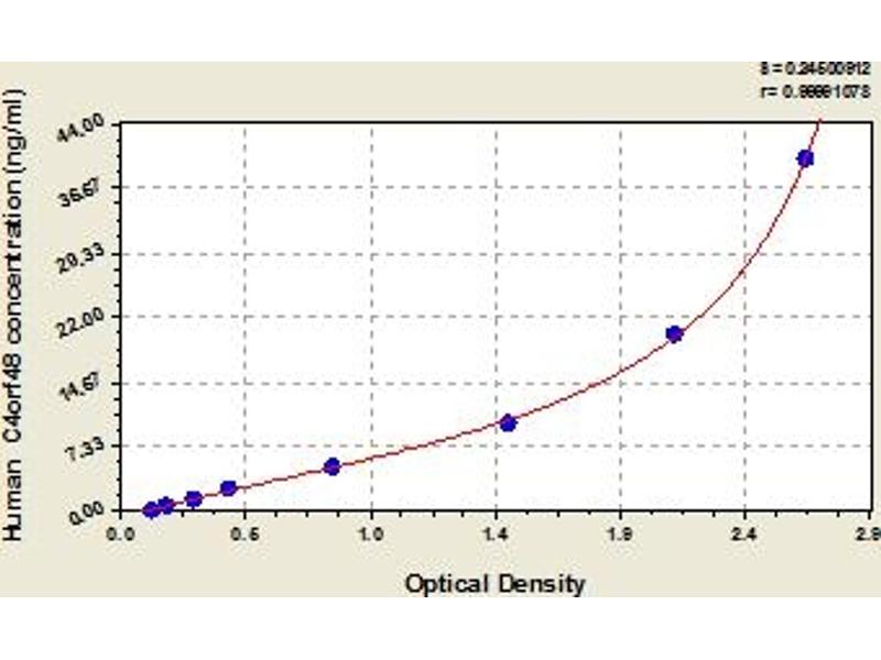 - This assay has high sensitivity and excellent specificity for detection of human C4ORF48. No significant cross-reactivity or interference between human C4ORF48 and analogues was observed. Note: Limited by current skills and knowledge, it is impossible for us to complete the cross-reactivity detection between human C4ORF48 and all the analogues, therefore, cross reaction may still exist.