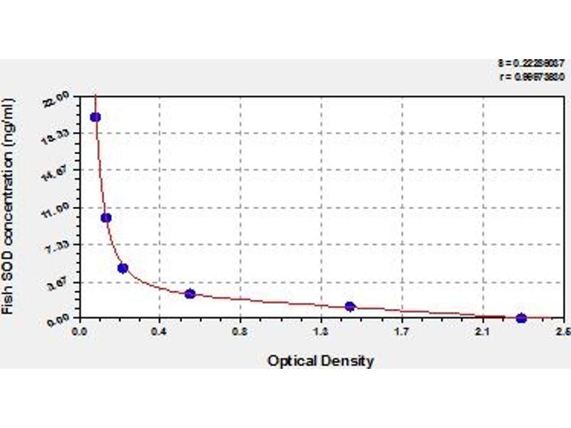 This assay has high sensitivity and excellent specificity for detection of fish SOD. No significant cross-reactivity or interference between fish SOD and analogues was observed. Note: Limited by current skills and knowledge, it is impossible for us to complete the cross-reactivity detection between fish SOD and all the analogues, therefore, cross reaction may still exist.
