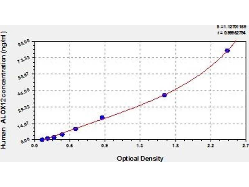This assay has high sensitivity and excellent specificity for detection of human ALOX12/LOG12. No significant cross-reactivity or interference between human ALOX12/LOG12 and analogues was observed. Note: Limited by current skills and knowledge, it is impossible for us to complete the cross-reactivity detection between human ALOX12/LOG12 and all the analogues, therefore, cross reaction may still exist.