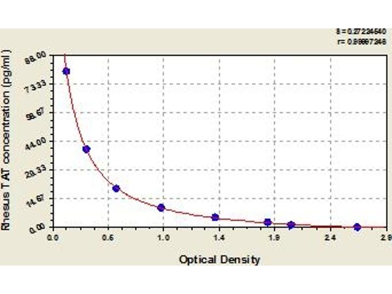 This assay has high sensitivity and excellent specificity for detection of rhesus TAT. No significant cross-reactivity or interference between rhesus TAT and analogues was observed. Note: Limited by current skills and knowledge, it is impossible for us to complete the cross-reactivity detection between rhesus TAT and all the analogues, therefore, cross reaction may still exist.