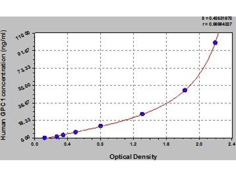 This assay has high sensitivity and excellent specificity for detection of human GPC1. No significant cross-reactivity or interference between human GPC1 and analogues was observed. Note: Limited by current skills and knowledge, it is impossible for us to complete the cross-reactivity detection between human GPC1 and all the analogues, therefore, cross reaction may still exist.