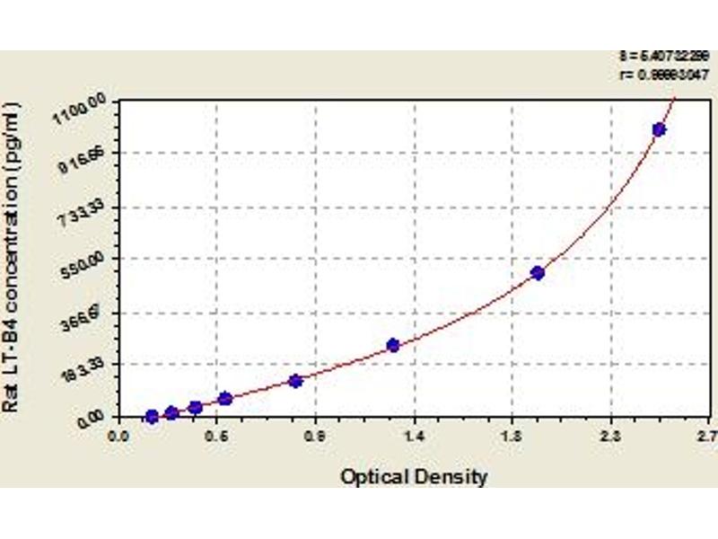 This assay has high sensitivity and excellent specificity for detection of rat LT-B4. No significant cross-reactivity or interference between rat LT-B4 and analogues was observed. Note: Limited by current skills and knowledge, it is impossible for us to complete the cross-reactivity detection between rat LT-B4 and all the analogues, therefore, cross reaction may still exist.
