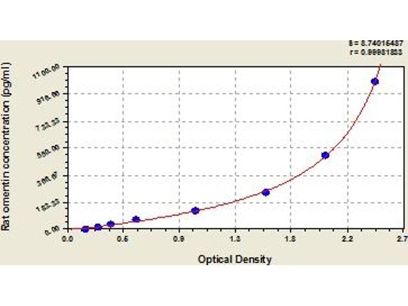 This assay has high sensitivity and excellent specificity for detection of rat omentin. No significant cross-reactivity or interference between rat omentin and analogues was observed. Note: Limited by current skills and knowledge, it is impossible for us to complete the cross-reactivity detection between rat omentin and all the analogues, therefore, cross reaction may still exist.
