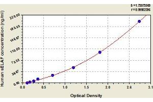 This assay has high sensitivity and excellent specificity for detection of human sELAF. No significant cross-reactivity or interference between human sELAF and analogues was observed. Note: Limited by current skills and knowledge, it is impossible for us to complete the cross-reactivity detection between human sELAF and all the analogues, therefore, cross reaction may still exist.