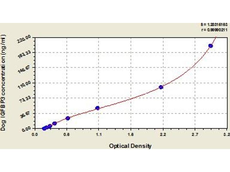 This assay has high sensitivity and excellent specificity for detection of dog IGFBP3. No significant cross-reactivity or interference between dog IGFBP3 and analogues was observed. Note: Limited by current skills and knowledge, it is impossible for us to complete the cross-reactivity detection between dog IGFBP3 and all the analogues, therefore, cross reaction may still exist.
