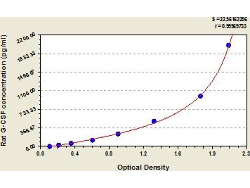 This assay has high sensitivity and excellent specificity for detection of rat G-CSF. No significant cross-reactivity or interference between rat G-CSF and analogues was observed. Note: Limited by current skills and knowledge, it is impossible for us to complete the cross-reactivity detection between rat G-CSF and all the analogues, therefore, cross reaction may still exist.