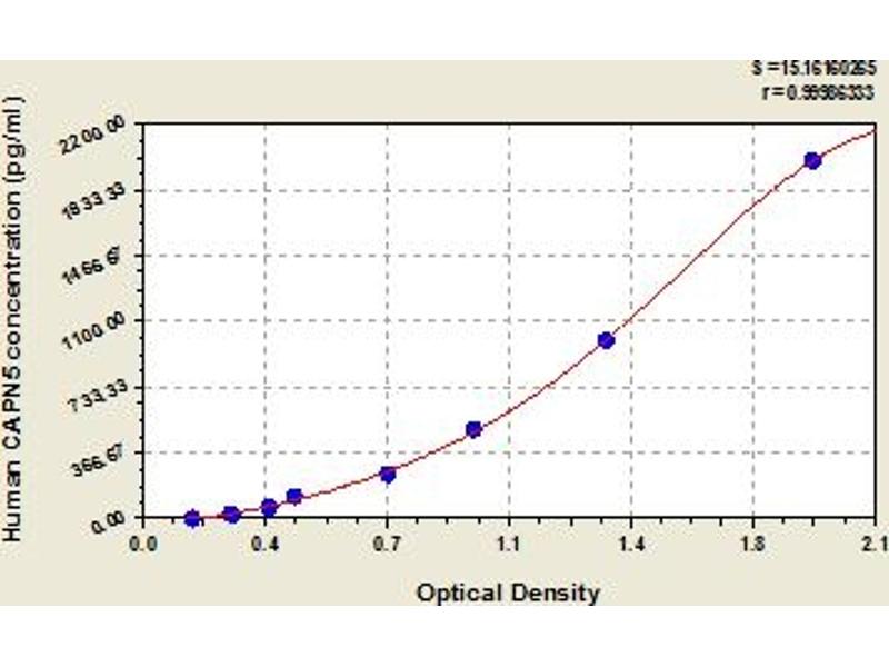 This assay has high sensitivity and excellent specificity for detection of human CAPN5. No significant cross-reactivity or interference between human CAPN5 and analogues was observed. Note: Limited by current skills and knowledge, it is impossible for us to complete the cross-reactivity detection between human CAPN5 and all the analogues, therefore, cross reaction may still exist.