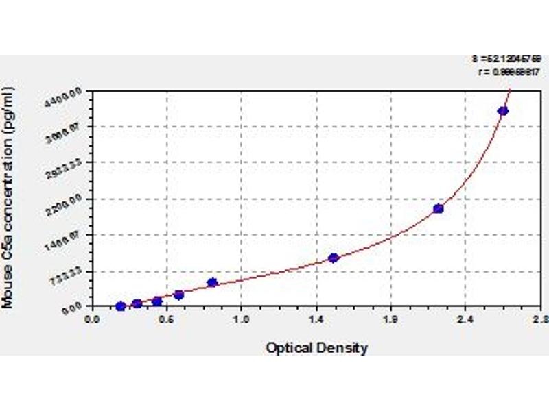 This assay has high sensitivity and excellent specificity for detection of mouse C5a. No significant cross-reactivity or interference between mouse C5a and analogues was observed. Note: Limited by current skills and knowledge, it is impossible for us to complete the cross-reactivity detection between mouse C5a and all the analogues, therefore, cross reaction may still exist.