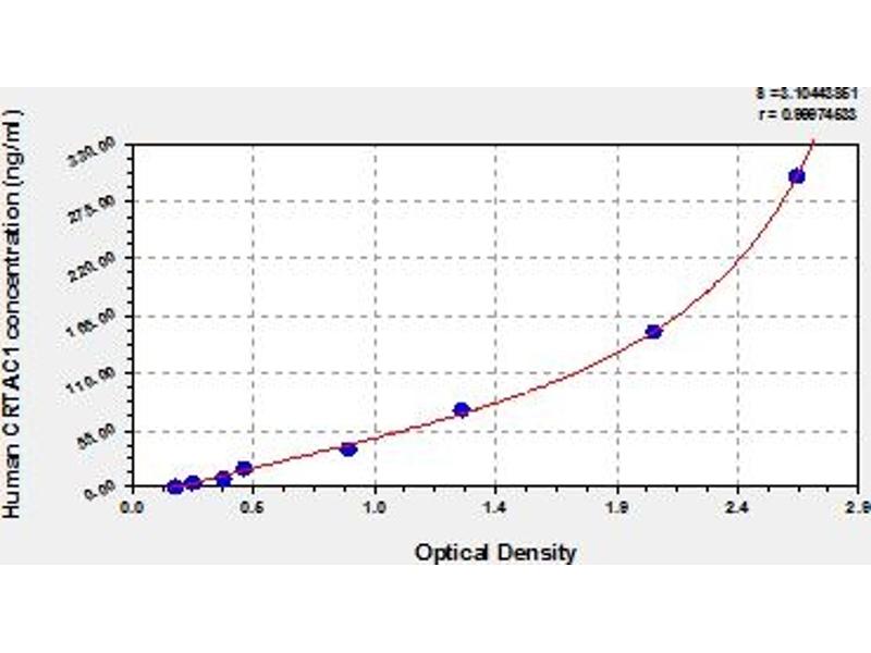 - This assay has high sensitivity and excellent specificity for detection of human CRTAC1. No significant cross-reactivity or interference between human CRTAC1 and analogues was observed. Note: Limited by current skills and knowledge, it is impossible for us to complete the cross-reactivity detection between human CRTAC1 and all the analogues, therefore, cross reaction may still exist.