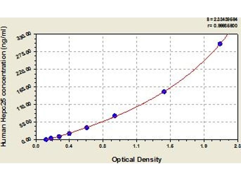 This assay has high sensitivity and excellent specificity for detection of human Hepc25. No significant cross-reactivity or interference between human Hepc25 and analogues was observed. Note: Limited by current skills and knowledge, it is impossible for us to complete the cross-reactivity detection between human Hepc25 and all the analogues, therefore, cross reaction may still exist.