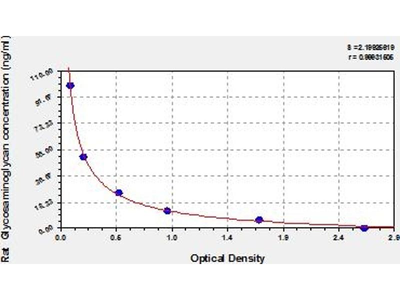 This assay has high sensitivity and excellent specificity for detection of rat glycosaminoglycan. No significant cross-reactivity or interference between rat glycosaminoglycan and analogues was observed. Note: Limited by current skills and knowledge, it is impossible for us to complete the cross-reactivity detection between rat glycosaminoglycan and all the analogues, therefore, cross reaction may still exist.
