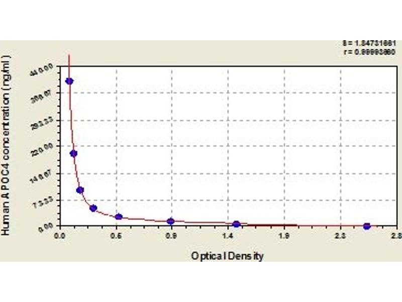 This assay has high sensitivity and excellent specificity for detection of human APOC4. No significant cross-reactivity or interference between human APOC4 and analogues was observed. Note: Limited by current skills and knowledge, it is impossible for us to complete the cross-reactivity detection between human APOC4 and all the analogues, therefore, cross reaction may still exist.