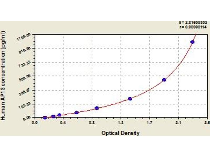 This assay has high sensitivity and excellent specificity for detection of human AP13. No significant cross-reactivity or interference between human AP13 and analogues was observed. Note: Limited by current skills and knowledge, it is impossible for us to complete the cross-reactivity detection between human AP13 and all the analogues, therefore, cross reaction may still exist.