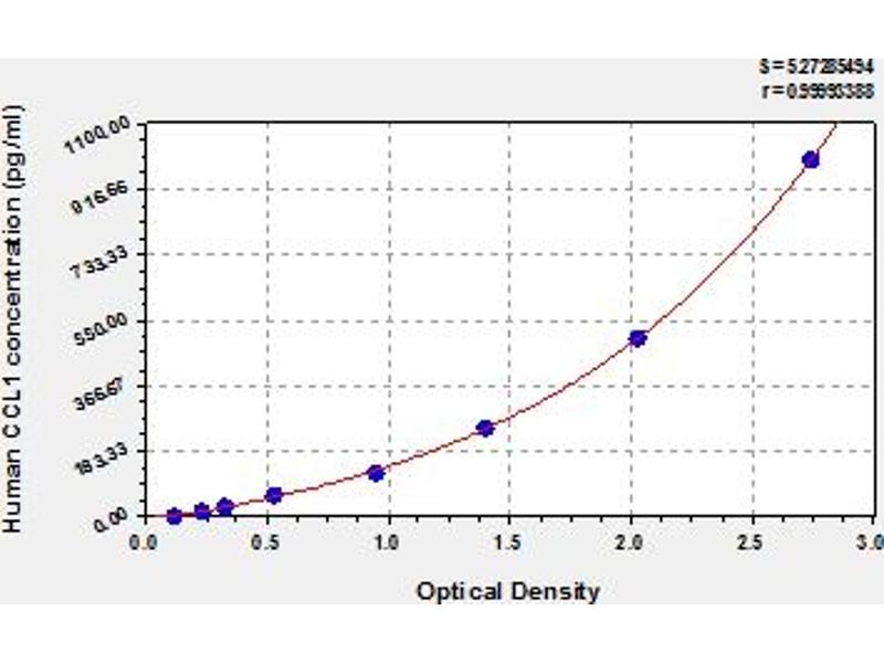 This assay has high sensitivity and excellent specificity for detection of human CCL1. No significant cross-reactivity or interference between human CCL1 and analogues was observed. Note: Limited by current skills and knowledge, it is impossible for us to complete the cross-reactivity detection between human CCL1 and all the analogues, therefore, cross reaction may still exist.