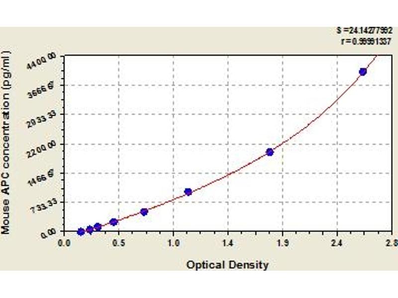 - This assay has high sensitivity and excellent specificity for detection of mouse APC. No significant cross-reactivity or interference between mouse APC and analogues was observed. Note: Limited by current skills and knowledge, it is impossible for us to complete the cross-reactivity detection between mouse APC and all the analogues, therefore, cross reaction may still exist.