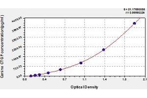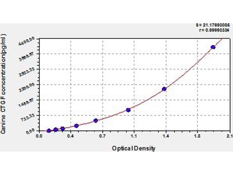 This assay has high sensitivity and excellent specificity for detection of canine CTGF. No significant cross-reactivity or interference between canine CTGF and analogues was observed. Note: Limited by current skills and knowledge, it is impossible for us to complete the cross-reactivity detection between canine CTGF and all the analogues, therefore, cross reaction may still exist.