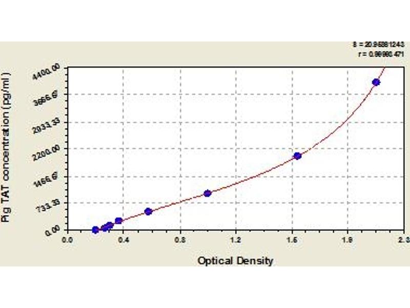 This assay has high sensitivity and excellent specificity for detection of pig TAT. No significant cross-reactivity or interference between pig TAT and analogues was observed. Note: Limited by current skills and knowledge, it is impossible for us to complete the cross-reactivity detection between pig TAT and all the analogues, therefore, cross reaction may still exist.
