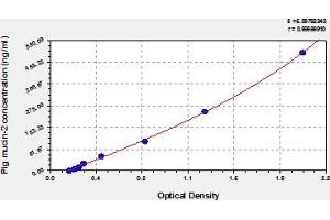 This assay has high sensitivity and excellent specificity for detection of pig MUC2. No significant cross-reactivity or interference between pig MUC2 and analogues was observed. Note: Limited by current skills and knowledge, it is impossible for us to complete the cross-reactivity detection between pig MUC2 and all the analogues, therefore, cross reaction may still exist.