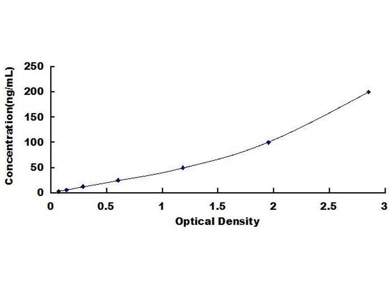 2. Standard - Reconstitute the Standard with 1.0 mL of Standard Diluent, keep for 10 minutes at room temperature, shake gently (not to foam). The concentration of the standard in the stock solution is 200ng/mL. Prepare 7 tubes containing 0.5 mL Standard Diluent and produce a double dilution series by transferring 500 µL each. Mix each tube thoroughly before the next transfer. Set up 7 points of diluted standard such as 200ng/mL, 100ng/mL, 50ng/mL, 25ng/mL, 12.5ng/mL, 6.25ng/mL, 3.12ng/mL, and the last microcentrifuge tube with Standard Diluent is the blank as 0pg/mL.
