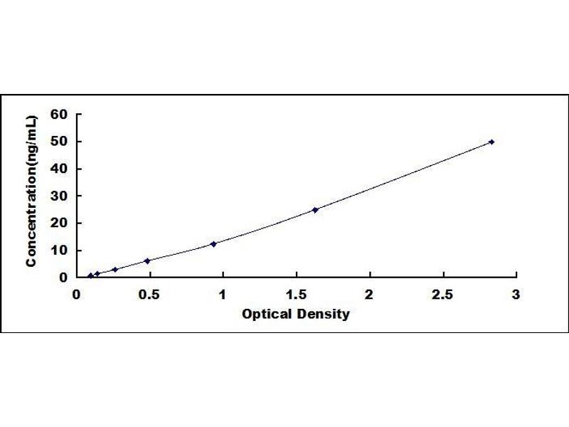 - Standard - Reconstitute the Standard with 1.0 mL of Standard Diluent, keep for 10 minutes at room temperature, shake gently (not to foam). The concentration of the standard in the stock solution is 50ng/mL. Prepare 7 tubes containing 0.5 mL Standard Diluent and produce a double dilution series by transferring 500 µL each. Mix each tube thoroughly before the next transfer. Set up 7 points of diluted standard such as 50ng/mL, 25ng/mL, 12.5ng/mL, 6.25ng/mL, 3.12ng/mL, 1.56ng/mL, 0.78ng/mL, and the last microcentrifuge tube with Standard Diluent is the blank as 0ng/mL.