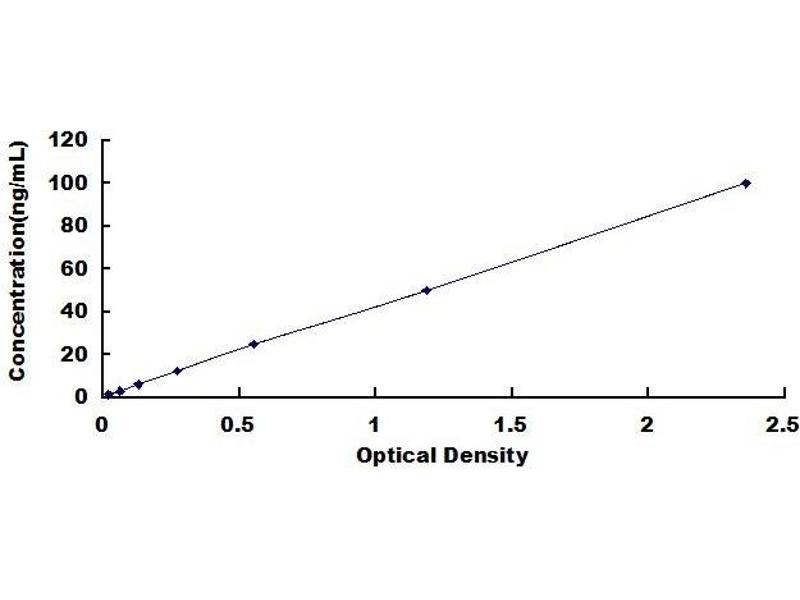 - Standard - Reconstitute the Standard with 1.0 mL of Standard Diluent, keep for 10 minutes at room temperature, shake gently (not to foam). The concentration of the standard in the stock solution is 800ng/mL. Firstly dilute the stock solution to 100 ng/mL and the diluted standard serves as the highest standard (100 ng/mL). Then prepare 7 tubes containing 0.5 mL Standard Diluent and produce a double dilution series by transferring 500 µL each. Mix each tube thoroughly before the next transfer. Set up 7 points of diluted standard such as 100ng/mL, 50ng/mL, 25ng/mL, 12.5ng/mL, 6.25ng/mL, 3.12ng/mL, 1.56ng/mL, and the last microcentrifuge tube with Standard Diluent is the blank as 0pg/mL.