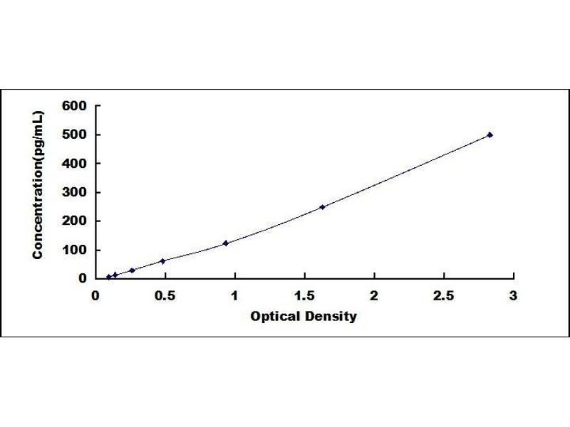 2. Standard - Reconstitute the Standard with 0.5 mL of Standard Diluent, keep for 10 minutes at room temperature, shake gently (not to foam). The concentration of the standard in the stock solution is 500pg/mL. Prepare 7 tubes containing 0.25 mL Standard Diluent and produce a double dilution series by transferring 250 µL each. Mix each tube thoroughly before the next transfer. Set up 7 points of diluted standard such as 500pg/mL, 250pg/mL, 125pg/mL, 62.5pg/mL, 31.2pg/mL, 15.6pg/mL, 7.8pg/mL, and the last microcentrifuge tube with Standard Diluent is the blank as 0pg/mL.
