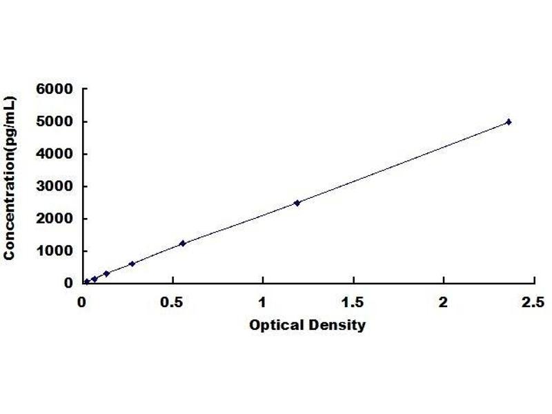 - Standard - Reconstitute the Standard with 1.0 mL of Standard Diluent, keep for 10 minutes at room temperature, shake gently (not to foam). The concentration of the standard in the stock solution is 10,000pg/mL. Firstly dilute the stock solution to 5,000 pg/mL and the diluted standard serves as the highest standard (5,000 pg/mL). Then prepare 7 tubes containing 0.5 mL Standard Diluent and produce a double dilution series by transferring 500 µL each. Mix each tube thoroughly before the next transfer. Set up 7 points of diluted standard such as 5,000pg/mL, 2,500pg/mL, 1,250pg/mL, 625pg/mL, 312pg/mL, 156pg/mL, 78pg/mL, and the last microcentrifuge tube with Standard Diluent is the blank as 0pg/mL.