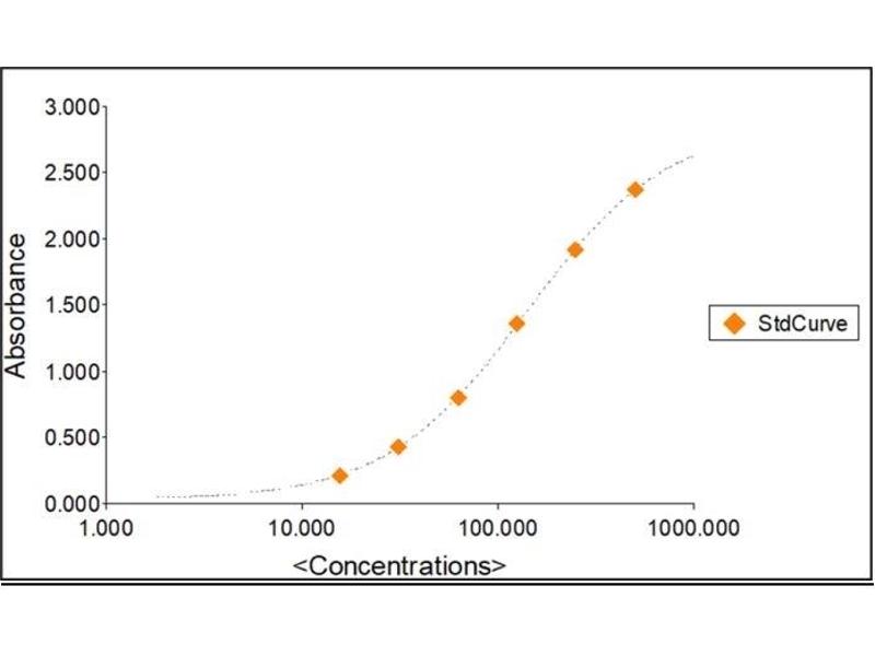 2. The Standards and the test sample(s) should be loaded into the ELISA wells as quickly as possible to avoid a shift in OD readings. Using a multichannel pipette would reduce this occurrence. Pipette 100 μL of Standard 0 (0.0 ng/mL) in duplicate Standard 1 (15.63 ng/mL) in duplicate Standard 2 (31.25 ng/mL) in duplicate Standard 3 (62.50 ng/mL) in duplicate Standard 4 (125 ng/mL) in duplicate Standard 5 (250 ng/mL) in duplicate Standard 6 (500 ng/mL) in duplicate