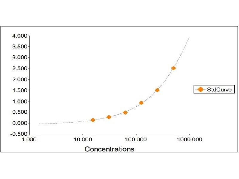 2. The Standards and the test sample(s) should be loaded into the ELISA wells as quickly as possible to avoid a shift in OD readings. Using a multichannel pipette would reduce this occurrence. Pipette 100 μL of Standard 0 (0.0 ng/mL) in duplicate Standard 1 (15.63 ng/mL) in duplicate Standard 2 (31.25 ng/mL) in duplicate Standard 3 (62.50 ng/mL) in duplicate Standard 4 (125 ng/mL) in duplicate Standard 5 (250 ng/mL) in duplicate Standard 6 (500 ng/mL) in duplicate