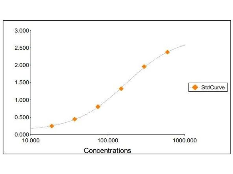 2. The Standards and the test sample(s) should be loaded into the ELISA wells as quickly as possible to avoid a shift in OD readings. Using a multichannel pipette would reduce this occurrence. Pipette 100 μL of Standard 0 (0.0 ng/mL) in duplicate Standard 1 (18.75 ng/mL) in duplicate Standard 2 (37.50 ng/mL) in duplicate Standard 3 (75 ng/mL) in duplicate Standard 4 (150 ng/mL) in duplicate Standard 5 (300 ng/mL) in duplicate Standard 6 (600 ng/mL) in duplicate