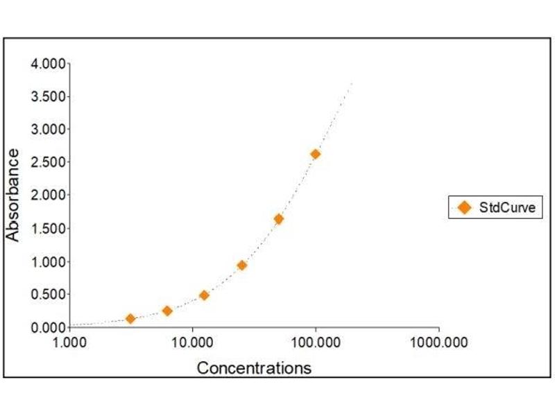 2. The Standards and the test sample(s) should be loaded into the ELISA wells as quickly as possible to avoid a shift in OD readings. Using a multichannel pipette would reduce this occurrence. Pipette 100 μL of Standard 0 (0.0 ng/mL) in duplicate Standard 1 (3.13 ng/mL) in duplicate Standard 2 (6.25 ng/mL) in duplicate Standard 3 (12.50 ng/mL) in duplicate Standard 4 (25 ng/mL) in duplicate Standard 5 (50 ng/mL) in duplicate Standard 6 (100 ng/mL) in duplicate