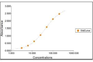 2. The Standards and the test sample(s) should be loaded into the ELISA wells as quickly as possible to avoid a shift in OD readings. Using a multichannel pipette would reduce this occurrence. Pipette 100 μL of Standard 0 (0.0 ng/mL) in duplicate Standard 1 (3.13 ng/mL) in duplicate Standard 2 (6.25 ng/mL) in duplicate Standard 3 (12.50 ng/mL) in duplicate Standard 4 (25 ng/mL) in duplicate Standard 5 (50 ng/mL) in duplicate Standard 6 (100 ng/mL) in duplicate Standard 7 (200 ng/mL) in duplicate