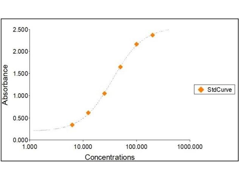 2. The Standards and the test sample(s) should be loaded into the ELISA wells as quickly as possible to avoid a shift in OD readings. Using a multichannel pipette would reduce this occurrence. Pipette 100 μL of Standard 0 (0.0 ng/mL) in duplicate Standard 1 (6.25 ng/mL) in duplicate Standard 2 (12.5 ng/mL) in duplicate Standard 3 (25 ng/mL) in duplicate Standard 4 (50 ng/mL) in duplicate Standard 5 (100 ng/mL) in duplicate Standard 6 (200 ng/mL) in duplicate