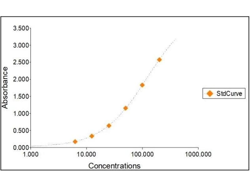 2. The Standards and the test sample(s) should be loaded into the ELISA wells as quickly as possible to avoid a shift in OD readings. Using a multichannel pipette would reduce this occurrence. Pipette 100 μL of Standard 0 (0.0 ng/mL) in duplicate Standard 1 (6.25 ng/mL) in duplicate Standard 2 (12.50 ng/mL) in duplicate Standard 3 (25 ng/mL) in duplicate Standard 4 (50 ng/mL) in duplicate Standard 5 (100 ng/mL) in duplicate Standard 6 (200 ng/mL) in duplicate