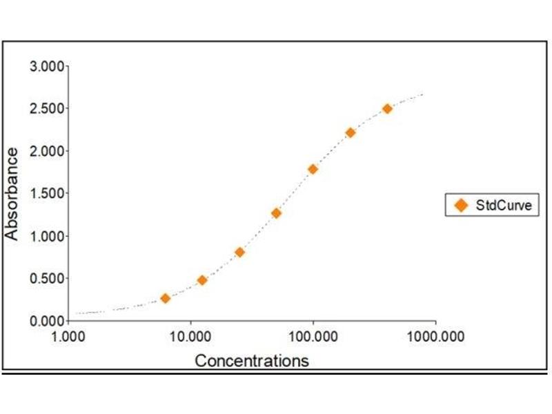 2. The Standards and the test sample(s) should be loaded into the ELISA wells as quickly as possible to avoid a shift in OD readings. Using a multichannel pipette would reduce this occurrence. Pipette 100 μL of Standard 0 (0.0 ng/mL) in duplicate Standard 1 (6.25 ng/mL) in duplicate Standard 2 (12.50 ng/mL) in duplicate Standard 3 (25 ng/mL) in duplicate Standard 4 (50 ng/mL) in duplicate Standard 5 (100 ng/mL) in duplicate Standard 6 (200 ng/mL) in duplicate Standard 7 (400 ng/mL) in duplicate