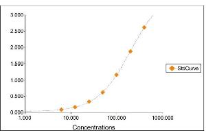 2. The Standards and the test sample(s) should be loaded into the ELISA wells as quickly as possible to avoid a shift in OD readings. Using a multichannel pipette would reduce this occurrence. Pipette 100 μL of Standard 0 (0.0 ng/mL) in duplicate Standard 1 (6.25 ng/mL) in duplicate Standard 2 (12.50 ng/mL) in duplicate Standard 3 (25 ng/mL) in duplicate Standard 4 (50 ng/mL) in duplicate Standard 5 (100 ng/mL) in duplicate Standard 6 (200 ng/mL) in duplicate Standard 7 (400 ng/mL) in duplicate
