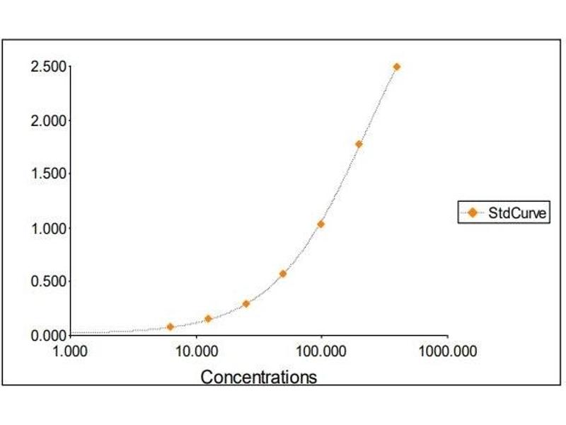 2. The Standards and the test sample(s) should be loaded into the ELISA wells as quickly as possible to avoid a shift in OD readings. Using a multichannel pipette would reduce this occurrence. Pipette 100 μL of Standard 0 (0.0 ng/mL) in duplicate Standard 1 (6.25 ng/mL) in duplicate Standard 2 (12.50 ng/mL) in duplicate Standard 3 (25 ng/mL) in duplicate Standard 4 (50 ng/mL) in duplicate Standard 5 (100 ng/mL) in duplicate Standard 6 (200 ng/mL) in duplicate Standard 7 (400 ng/mL) in duplicate