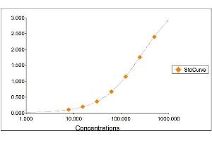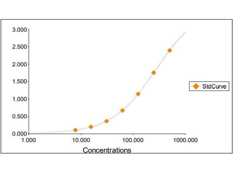 2. The Standards and the test sample(s) should be loaded into the ELISA wells as quickly as possible to avoid a shift in OD readings. Using a multichannel pipette would reduce this occurrence. Pipette 100 μL of Standard 0 (0.0 ng/mL) in duplicate Standard 1 (7.81 ng/mL) in duplicate Standard 2 (15.63 ng/mL) in duplicate Standard 3 (31.25 ng/mL) in duplicate Standard 4 (62.50 ng/mL) in duplicate Standard 5 (125 ng/mL) in duplicate Standard 6 (250 ng/mL) in duplicate Standard 7 (500 ng/mL) in duplicate