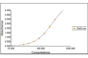 All samples and standards should be assayed in duplicates. 2. The Standards and the test sample(s) should be loaded into the ELISA wells as quickly as possible to avoid a shift in OD readings. Using a multichannel pipette would reduce this occurrence. Pipette 100 μL of Standard 0 (0.0 ng/mL) in duplicate Standard 1 26.34 (ng/mL) in duplicate Standard 2 39.51 (ng/mL) in duplicate Standard 3 59.26 (ng/mL) in duplicate Standard 4 88.89 (ng/mL) in duplicate Standard 5 133.33 (ng/mL) in duplicate Standard 6 200 (ng/mL) in duplicate Standard 7 300 (ng/mL) in duplicate 3. Pipette 100 μL of sample (in duplicate) into pre designated wells. 4. Incubate the micro titer plate at room temperature for sixty (60 ± 2) minutes. Keep plate covered and level during incubation. 5. Following incubation, aspirate the contents of the wells. 6. Completely fill each well with appropriately diluted Wash Solution and aspirate. Repeat three times, for a total of four washes. If washing manually: completely fill wells with wash buffer, invert the plate then pour/shake out the contents in a waste container. Follow this by sharply striking the wells on absorbent paper to remove residual buffer. Repeat 3 times for a total of four washes. 7. Pipette 100 μL of appropriately diluted Enzyme-Antibody Conjugate to each well. Incubate at room temperature for thirty (30 ± 2) minutes. Keep plate covered in the dark and level during incubation. 8. Wash and blot the wells as described in Steps 5/6. 9. Pipette 100 μL of TMB Substrate Solution into each well. 10. Incubate in the dark at room temperature for precisely ten (10) minutes. 11. After ten minutes, add 100 μL of Stop Solution to each well. 12. Determine the absorbance (450 nm) of the contents of each well within 30 minutes. Calibrate the plate reader to manufacturer’s specifications.