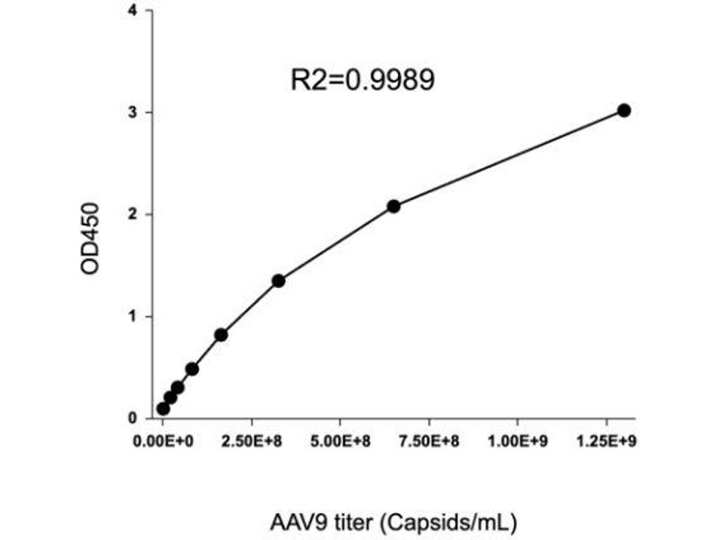 Preparation of AAV capsid standards: Add 700μL of distilled H2O to one vial of standard. Dissolve at room temperature for 10-20 min, mix gently and avoid vortexing. Two-fold serial dilution of the AAV8 standard with 1X Assay Buffer for the titration curve in duplicates is recommended.