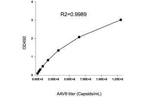 Empty AAV9 capsids lacking the transgene of interest cause unwanted immune response without providing the therapeutic benefit of the transgene. Alongside DNA and infectious titer, determination of the capsid titer is crucial for validating the efficacy and safety of your AAV gene therapy. Our titration kit detects full and empty AAV9 capsids. Note: User has the option of a rapid protocol (2 hours) for fast turnaround or a standard protocol (6 hours) for greater sensitivity.