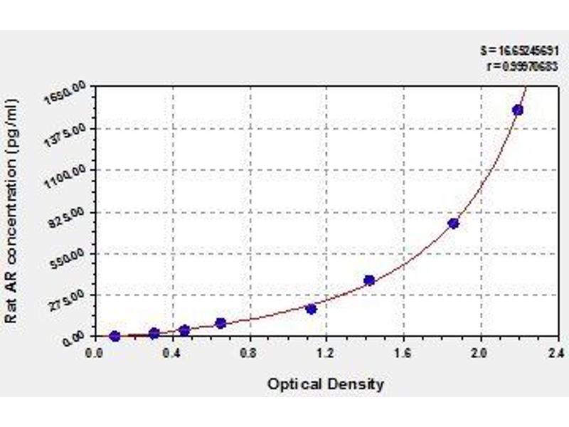- Antibody specific for AR has been pre-coated onto a microplate. Standards and samples are pipetted into the wells and any AR present is bound by the immobilized antibody. After removing any unbound substances, a biotin-conjugated antibody specific for AR is added to the wells. After washing, avidin conjugated Horseradish Peroxidase (HRP) is added to the wells. Following a wash to remove any unbound avidin-enzyme reagent, a substrate solution is added to the wells and color develops in proportion to the amount of AR bound in the initial step. The color development is stopped and the intensity of the color is measured.